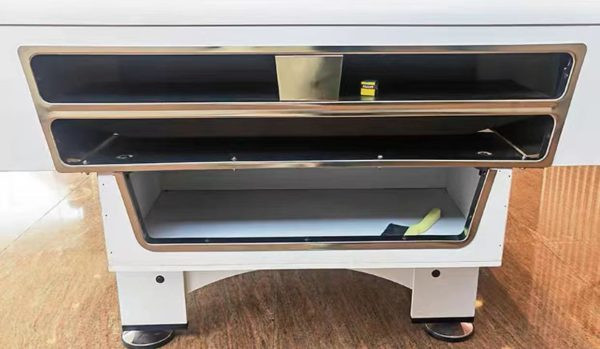 Made of MDF with PVC laminate, felt, hardware and plastic;