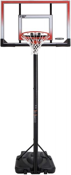This portable basketball system from Lifetime Products features a 50 in. Steel-Framed Shatterproof backboard with an Action Grip® height adjustment mechanism that adjusts from 7.5 to 10 feet high in 6-inch increments. It also includes a Slam-It Rim with an all-weather nylon net and a 3.5 in. diameter round steel pole. With a 35-gallon portable base, this system can easily be moved to a desired location. So bring the arena to your home with a residential basketball system from Lifetime Products.