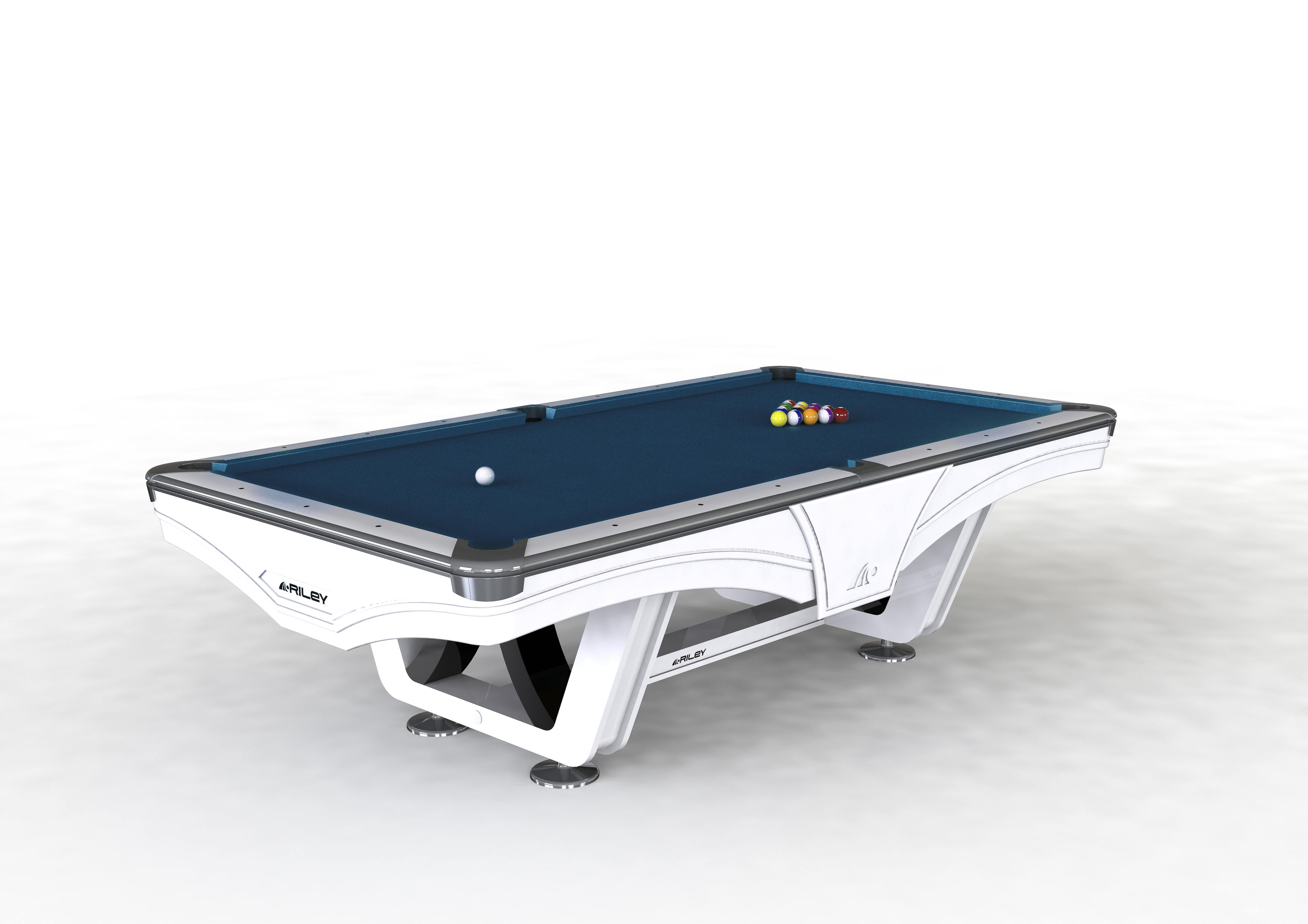 Inspired by nature, crafted with traditional values, and delivering a state-of-the-art playing experience, the Riley Ray, designed to mimic the flowing curves of a manta ray, is one of the most stunning tables that we have ever produced - One that will be at home in even the most opulent environment. * Full size 8' American Pool Table * Modern Aluminium Trim & Engraved Brushed Steel Pocket Plates * Plywood Internal Frame Construction * American Pool tournament cut slate - 1” (2.5cm) 3 Piece Slate * Riley K55 Series Cushion Rubber * Riley Integrated Slate Levelling System * Tournament Drop Pockets * Complete with Cloth & Accessories Dimensions: 260 x 149 x 79 cm