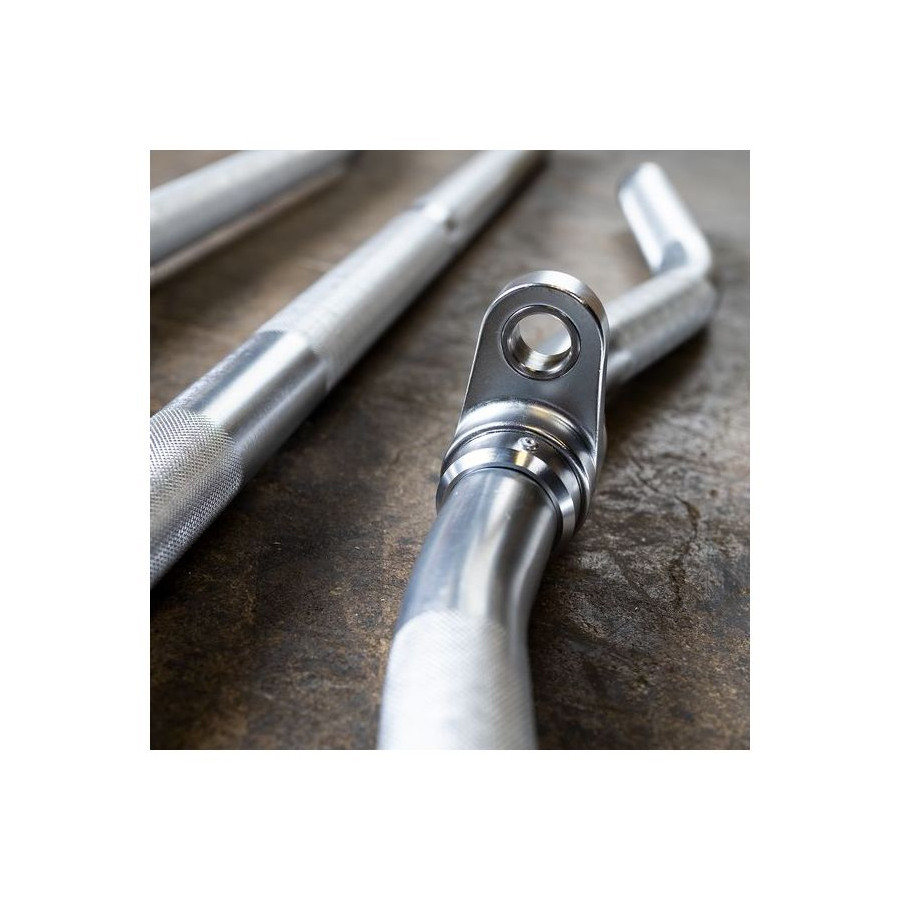 The Body-Solid Tools MB148A Aluminum Lat Bar attaches to any pulley or cable weight machine and is ideal for several lat and upper body focused exercises like lat pulldowns, straight arm pulldowns and more. Constructed with high-strength 1-¼” aluminum, the MB148A features knurled grips for easy handling throughout workouts. The MB148A’s aluminum construction is rust-proof and lightweight giving it distinct advantages over comparable steel cable attachment bars.
