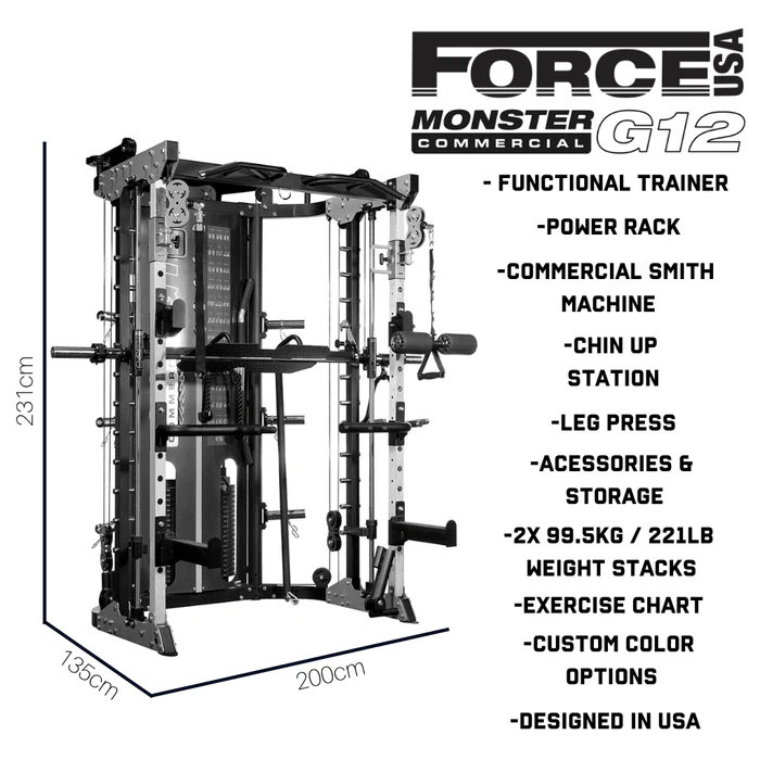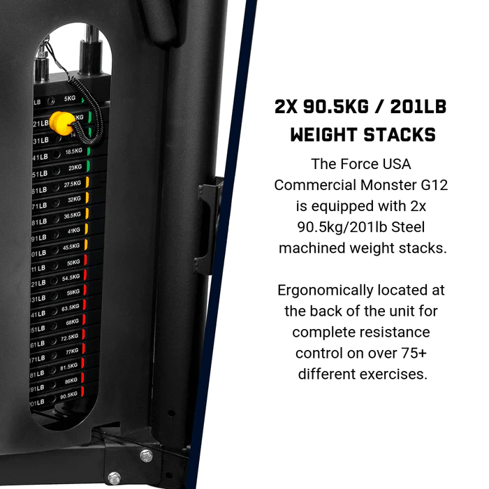 The Force USA G12 All-In-One Trainer combines both pin and plate loaded weights for the ultimate home gym strength training system. The pin-loaded stack weights are connected to the functional trainer and cable crossover stations from the rear of the structure. Pin loading offers a quick, easy, and safe solution...