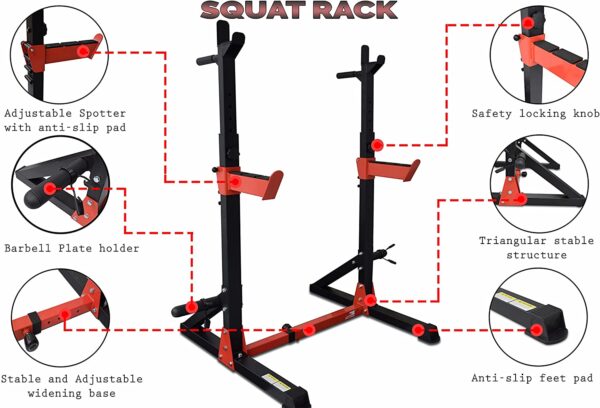 This Adjustable GM-8139 is made of strong and sturdy high-quality steel, this fully functional squat rack provides stable support for up to 250 kilograms and it can easily adjust the height that is suitable to the user.