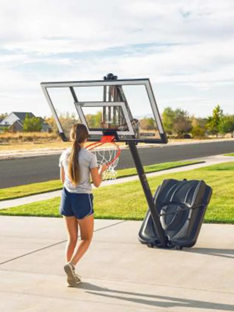 • Lifetime's portable basketball hoops are the perfect option for beginning and seasoned players alike! Simply move your hoop to the perfect place in your yard or driveway, and adjust the rim with one hand from 7.5-10 ft to a height you're comfortable with. The backboard combines a steel frame with an acrylic playing surface, making it durable and weather resistant. From pick-up games to shooting competitions, this hoop will be a hit with everyone who plays.