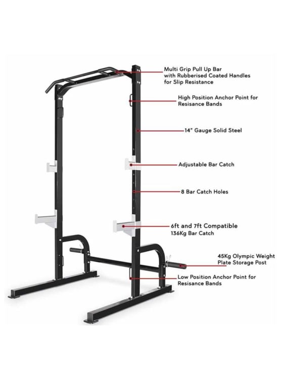 MULTI-GRIP PULL-UP BAR: Equipped with multi-grip pull-up handles furnished with sturdy foam pads, and adjustable safety catches, this gear allows you to perform chest press exercises, pull ups, and squat so you can target the major muscle groups.