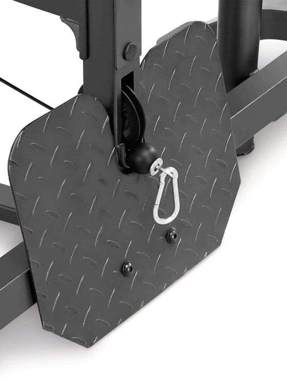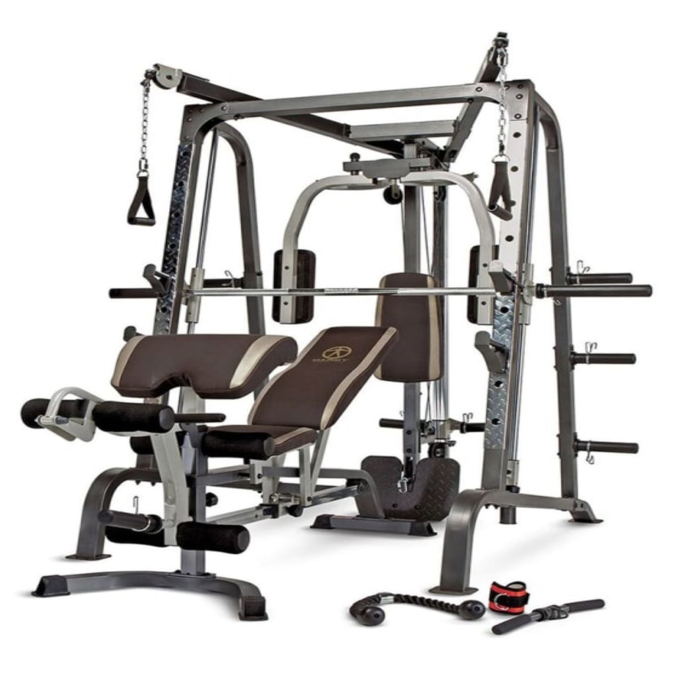 A complete workout station for serious home gym strength training is provided by the Marcy Diamond Smith Machine / Cage System MD-9010G. No matter your level of fitness, get a complete home workout. Thanks to the adjustable bar catches, safety stoppers, and “Ultra-Glide” linear bearings that are included, you can work out your entire body safely and effectively. In no time, you’ll start gaining muscle. The MD-9010G targets a number of muscle groups, including the ones in your shoulders, back, legs, and more. For a back workout that will have you throwing away your old pull-up bar, combine the upper cables with the provided lat bar. The best features of commercial gyms are brought into your home gym by this high-quality apparatus. You can perform exercise routines that previously required a gym membership, specifically, thanks to the cable crossovers. Additionally, the MD-9010G uses standard or Olympic weight plates depending on your preferences, so you can stop relying on weight stacks. You can arrange your strength-training gear and prevent clutter with the help of six Olympic weight plate storage pegs. Years of use in your own home gym are guaranteed by the sturdy tubular steel construction. This Smith Machine is a true All-in-One Home Gym because it was constructed with effectiveness, convenience, and durability in mind. The MD-9010G is a small home gym that comes with an assembly tutorial video at the bottom of the page.