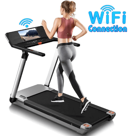 Mini-Pro Folding Treadmill With 4HP Motor Super Shock-Absorbing Capability Built-In Bluetooth Speaker Large TFT Display 11″ with Wifi Connect APP ZWIFT–EM-1286