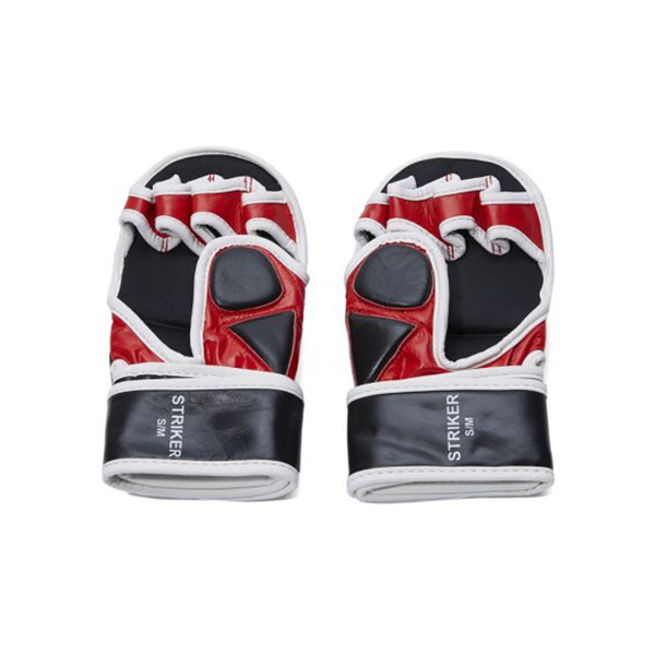 BENLEE LEATHER MMA SPARRING GLOVES STRIKER BLK S/M Extra thick pre-curved high impact foam over the knuckles and open palm for a better grip. Leather Extra thick pre-curved high impact foam over the knuckles and open palm for a better grip. Wrap around velcro closure for additional wrist support and fully padded thumb. Color Black Style Sparring Glove Material composition 100% Leather Material type Leather Outer material Leather Sport Martial Arts Brand name BENLEE