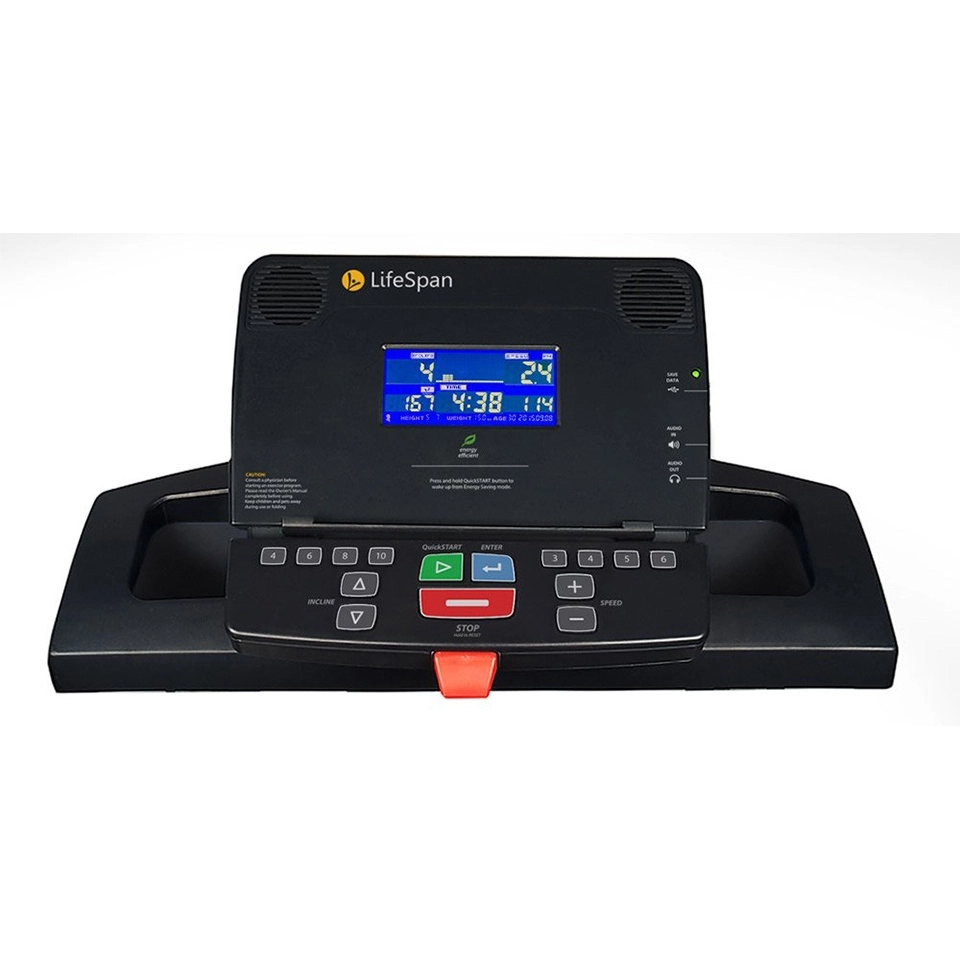 Lifespan Motorized Treadmill 2.25hp/tr1200it 7-Inch on-board console.EZfold folding system.Powerful 2.5 HP motor.Running deck suspension system.51 Preset programs.Take control of your fitness with the newly updated LifeSpan TR1200iT Colour folding treadmill. This affordable treadmill features a spacious belt surface that is perfect for walking, jogging or running and is supported by 8 compression shock absorbers to provide safe cushioning for your knees, back and joints. The TR1200i’s quick-load screen and simple console buttons make it easy to get moving without delay. Users can rotate through multiple dashboard themes for their preferred workout view on a vibrant, full-colour 7-inch display and use the convenient built-in Bluetooth to sync their workout results with ease. A treadmill you’ll never outpace, the TR1200I folding treadmill comes with 21 easy-to-use exercise programs – 2 heart rate control, 5 healthy living, 7 sports training, 5 weight loss and 2 user-customizable programs. Designed by exercise physiologists to expedite your progress, these safe, effective treadmill workouts help to improve your cardiovascular fitness, boost your health and burn fat. The effort stops the moment your workout is over. Simple to lift and easy to lower, the LifeSpan TR1200i’s EZfold technology utilizes a hydraulic shock to assist in folding and unfolding the treadmill. Simply lift the deck for a compact storage position and when you’re ready, the soft-drop system supports the complete weight of the treadmill as it unfolds for safe, convenient use. Designed to perform and built to last, the TR1200i’s powerful and long-lasting 2.5 hp continuous-duty motor can withstand even the most intense daily workouts, year after year. The ample 20-inch by 56-inch running surface can perfectly handle your favourite style of exercise, whether walking, jogging or running and the robotically-welded, all-steel frame is engineered to simulate real-world conditions over miles of use.