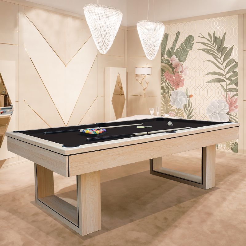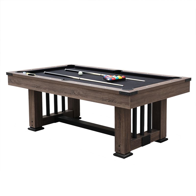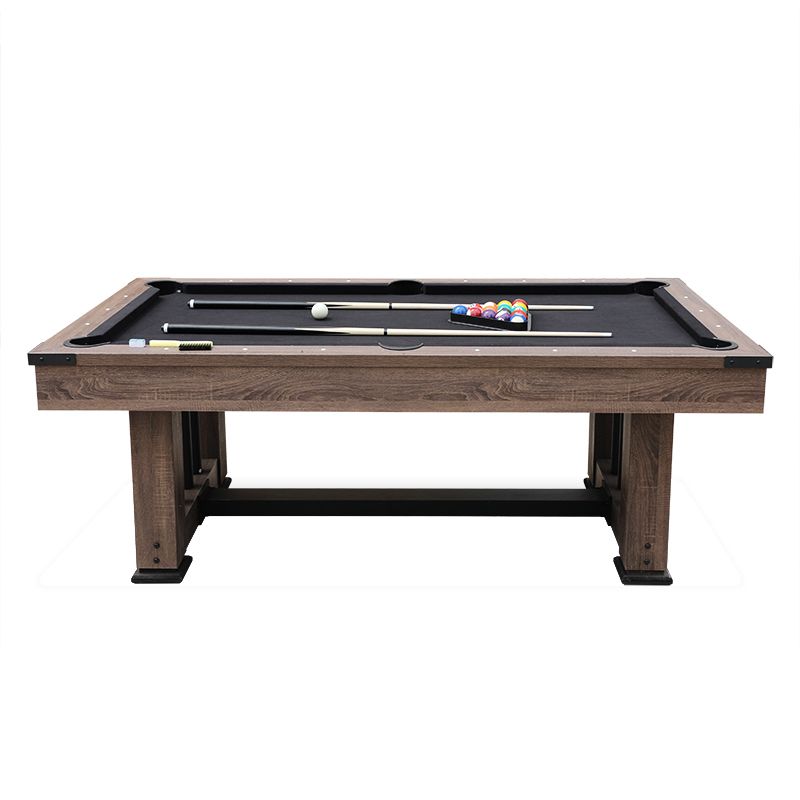 Made of MDF with PVC laminate, felt, hardware and plastic; Accessory: 1box 57.2mm billiard ball, 2pcs 145cm cue stick, 1pc brush, 1pc triangle, 2pcs chalk; 8ft. 244*132*82cm
