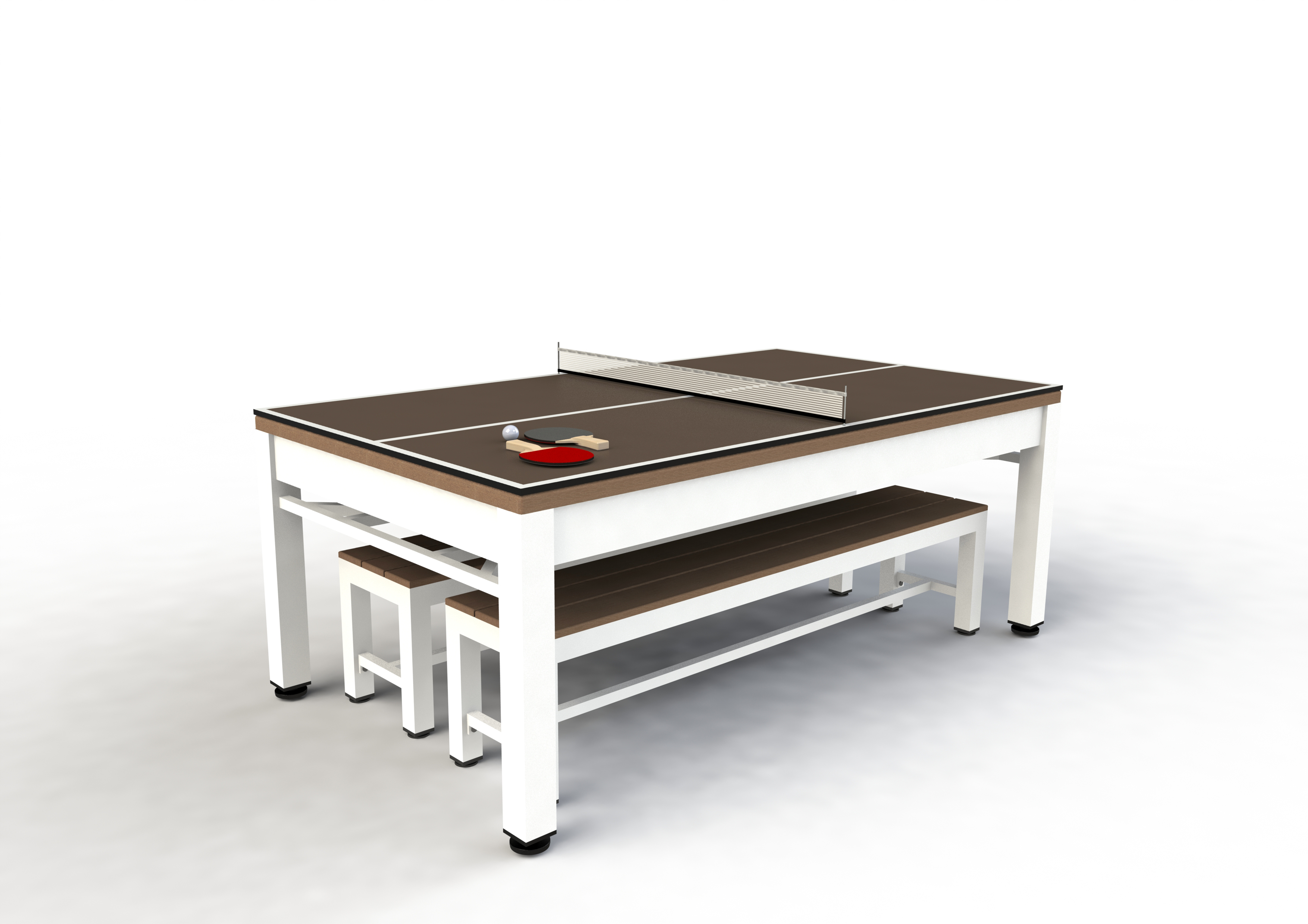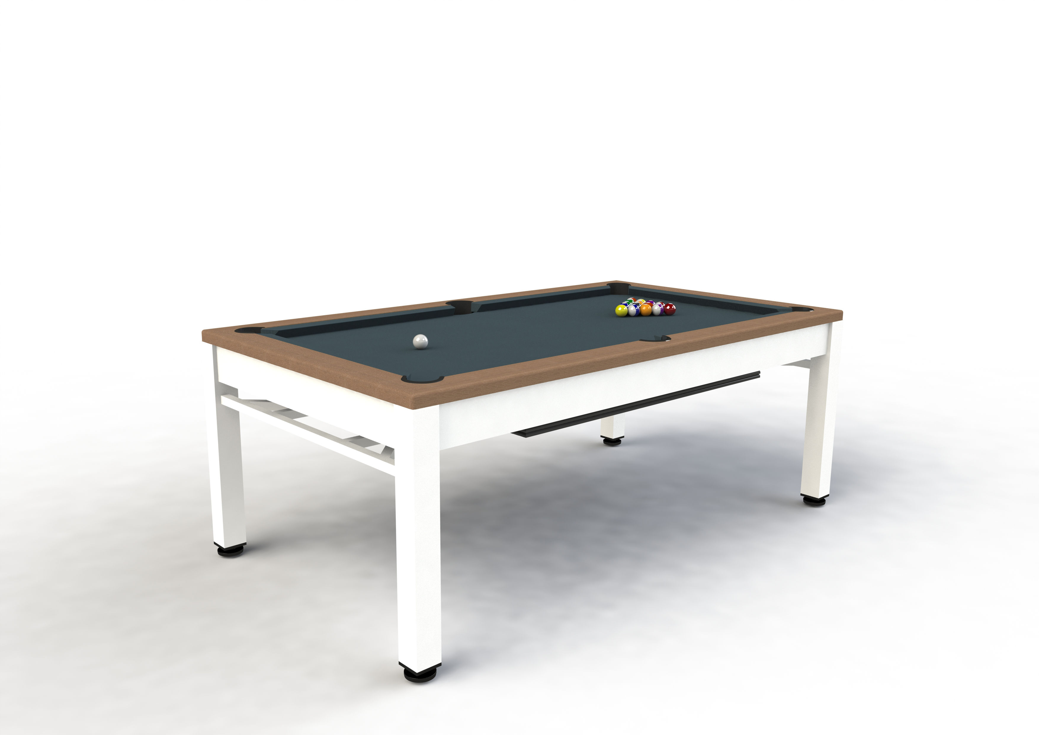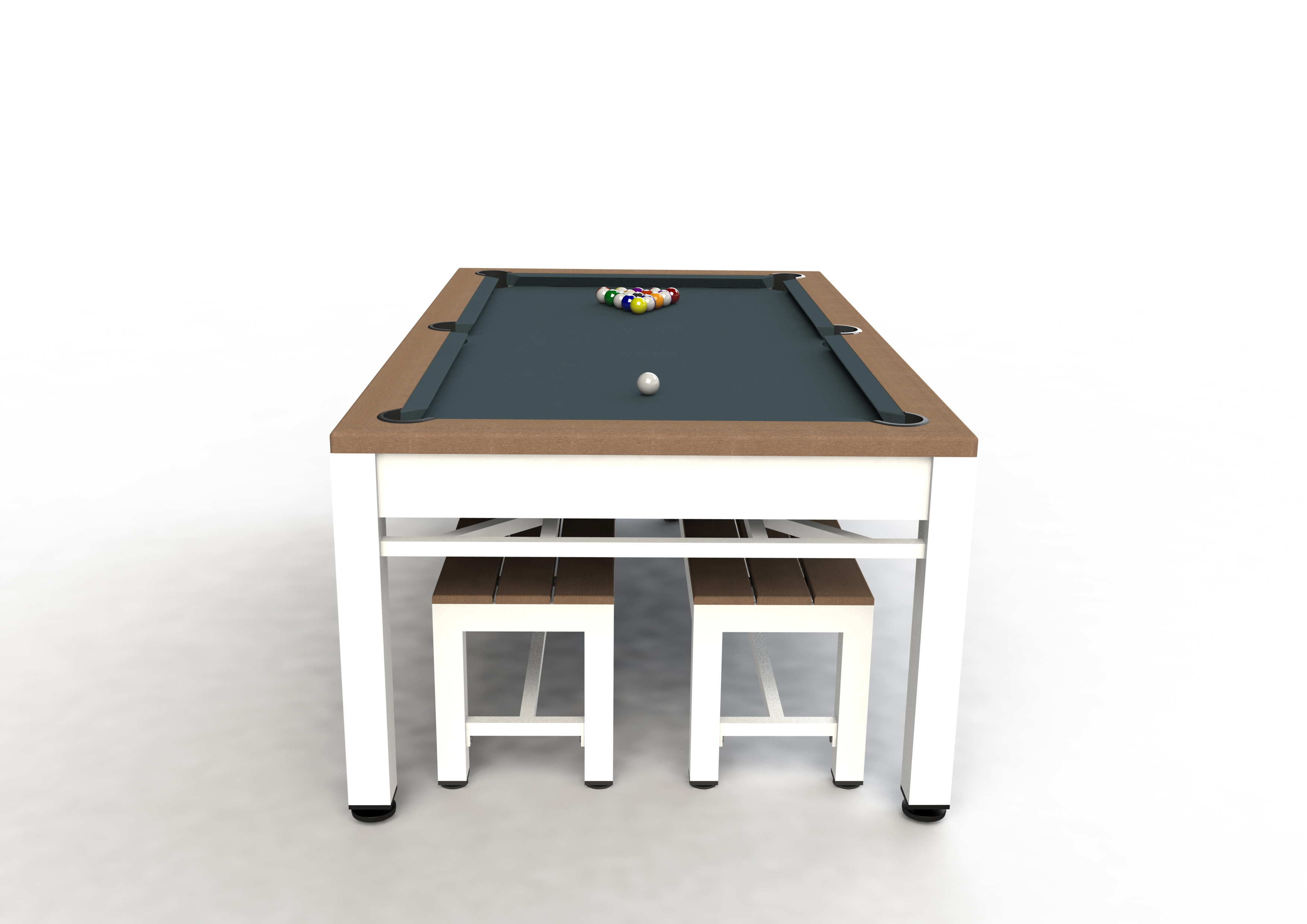 OverviewThis 7′ Outdoor American Pool Table is complete with weatherproof construction. This multifunctional table provides 3 functions – you can play pool, and table tennis, or use it as a dining table for the whole table. It’s suitable for the outdoors while kept in a shaded place (a special cover is included).