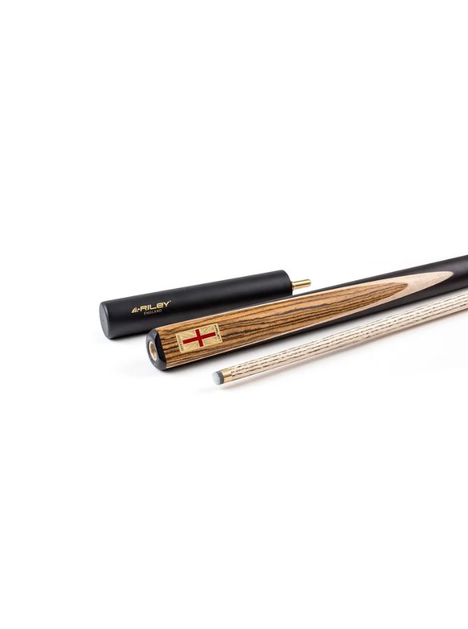 OverviewRiley England Ebony Series Cue – Including high-quality hand-spliced Ebony bottom section and beautiful Golden Sandal exotic wood front splice and contrasting genuine wood veneer. Complete with matching 6″ mini extension.