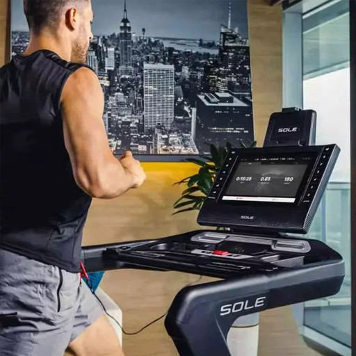 The F85 treadmill offers the added benefit of connecting to a WiFi network. Its 15.6" touchscreen display includes seven preset Apps, including popular platforms like YouTube and Netflix. Additionally, it supports screen mirroring, giving users more workout options. The treadmill is also compatible with the new Sole+ App, available on both Android and Apple App stores. While it comes with the standard programs available on all Sole treadmills, it also allows users to save up to 12 personalized programs, providing flexibility and variety in their workouts.