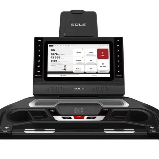The F85 treadmill also supports WiFi connectivity. Its 15.6" touchscreen display includes 7 preset apps, such as YouTube and Netflix, and allows for screen mirroring, providing users with diverse workout options. It connects to the new Sole+ app available on the Android and Apple app stores. Along with the standard programs offered on all Sole treadmills, the F85 can save up to 12 customizable programs, offering users flexibility and variety in their workouts.