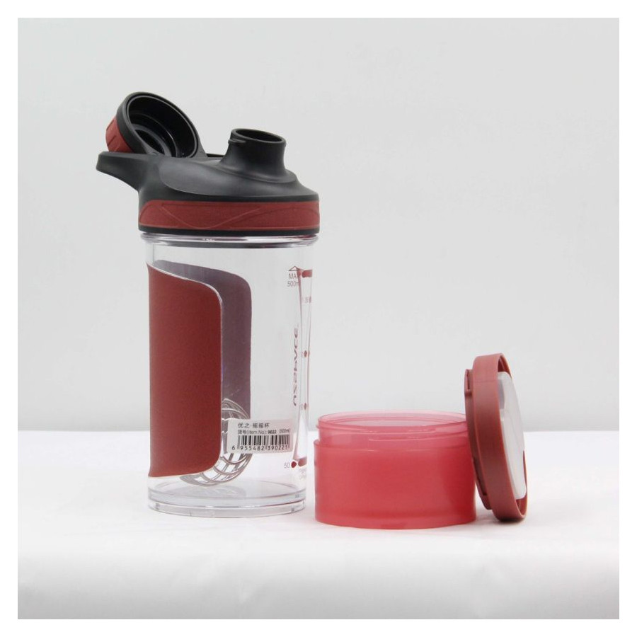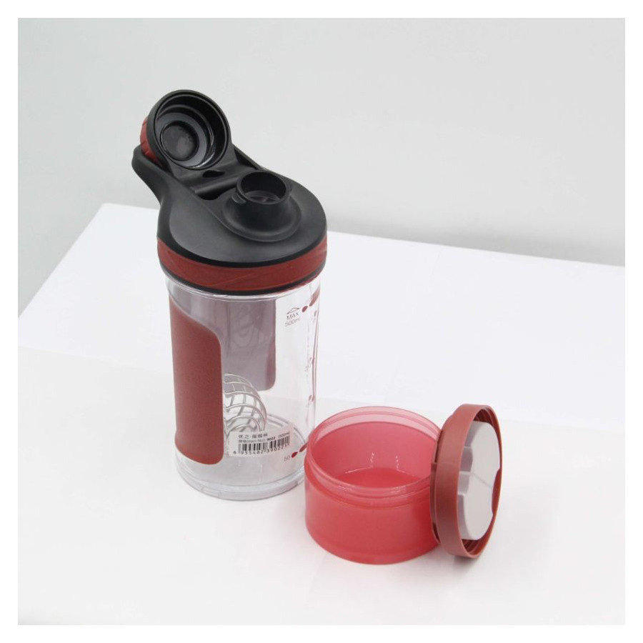 With its vibrant red color, ergonomic design, and practical features, this shaker bottle is an essential accessory for anyone committed to a healthy lifestyle.