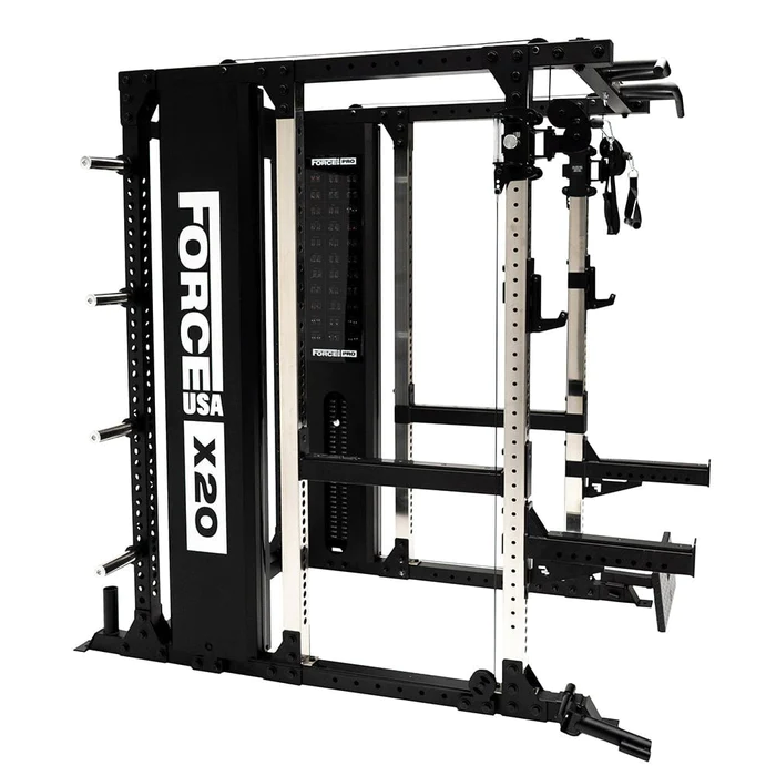 Introducing the world’s most versatile home gym – the Force USA® X20 Pro Multi Trainer combines a full commercial Power Rack with an enormous 260kg (573lbs) weight stack. This trainer includes a Lat Pulldown Attachment, Straight Bar Attachment, Landmine Attachment, Chin Up Station (450kg weight rating), Straight Pull Up Bar and a range of accessories for all your functional training needs. With a compact footprint and incredibly strong 7-11 gauge steel, you can unleash your inner workout beast and experience over 400 unique exercises to target every muscle while boosting your power and endurance.