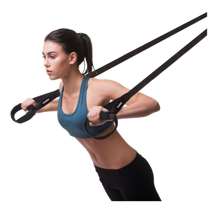 The York Fitness Suspension Trainer can simply be attached to your door to get a customized, total-body workout at home. When you’re going on vacation, you can take it with you and install it so you won’t miss a beat in your routine. It attaches to most doors. Use it for multiple strengthening exercises. It is constructed of durable polyester material.