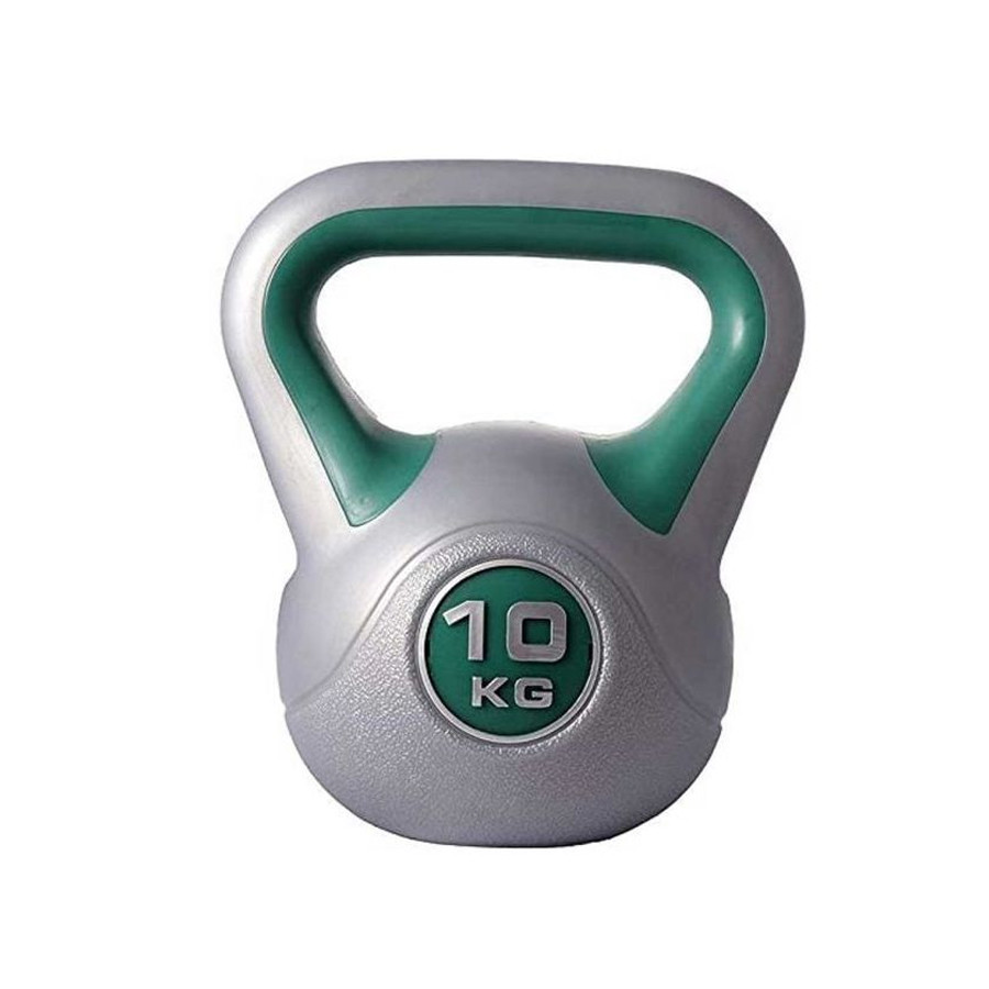 This kettle bell is made of plastic with a compact interior. It has a massive and professional construction. This kettle bell weighs 10 kg. Thanks to the material it doesn’t damage the ground during your exercise.Material: Concrete with plastic coatedProduct Dimensions: 21 x 21 x 30 cm